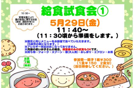 子育て支援センターどんぐり『給食試食会②』延期の日程とメニューのお知らせ 2022.02.21お知らせ 参加希望の方は、【行事参加フォーム】よりお申し込みください。 お知らせ 2月の子ども・地域食堂 ななかま堂のお知らせ 子育て支援センターどんぐり『0ちゃんあつまれ!』参加募集のお... 関連記事一覧 9月の子ども・地域食堂 ななかま堂のお知らせ 子育て支援センターどんぐり『クリスマス会』参加募集のお知... 子育て支援センターどんぐり『栄養講座』参加募集のお知らせ 3月のこども地域食堂 ななかま堂のお知らせです。 6月の子ども・地域食堂 ななかま堂のお知らせです。 子育て支援センターどんぐり『7・8・9月のおたよりです!... 子育て支援センターどんぐり『給食試食会①』参加募集のお知... 2月の子ども・地域食堂ななかま堂のお知らせです。 子育て支援センターどんぐり『給食試食会①』参加募集のお知...