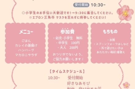 3月のこども・地域食堂です。 日時 3月19日(日) 10:30~