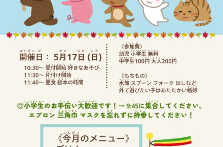子育て支援センターどんぐり『0ちゃんあつまれ!』参加募集のお知らせ 2024.06.12お知らせ 参加希望の方は、【行事参加フォーム】よりお申し込みください。 ※定員はありません。 お知らせ 子育て支援センターどんぐり『DIY体験』参加募集のお知らせ 6月のこども・地域食堂のお知らせです。 関連記事一覧 子育て支援センターどんぐり『私のワンピースの着せ替えセッ... 令和7年4月 入所の1号認定の募集を行います。 5月子ども・地域食堂 ななかま堂のお知らせ 子育て支援センターどんぐり『セルフケア講座』参加募集のお... 7月の子ども・地域食堂 ななかま堂のお知らせです。 3月の子ども・地域食堂ななかま堂開催のお知らせです。 子育て支援センターどんぐり『腰痛を解消する骨盤ケア+頭痛... 子育て支援センターどんぐり『給食試食会①』参加募集のお知... 子育て支援センターどんぐり『利用に関するお知らせ』