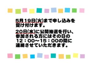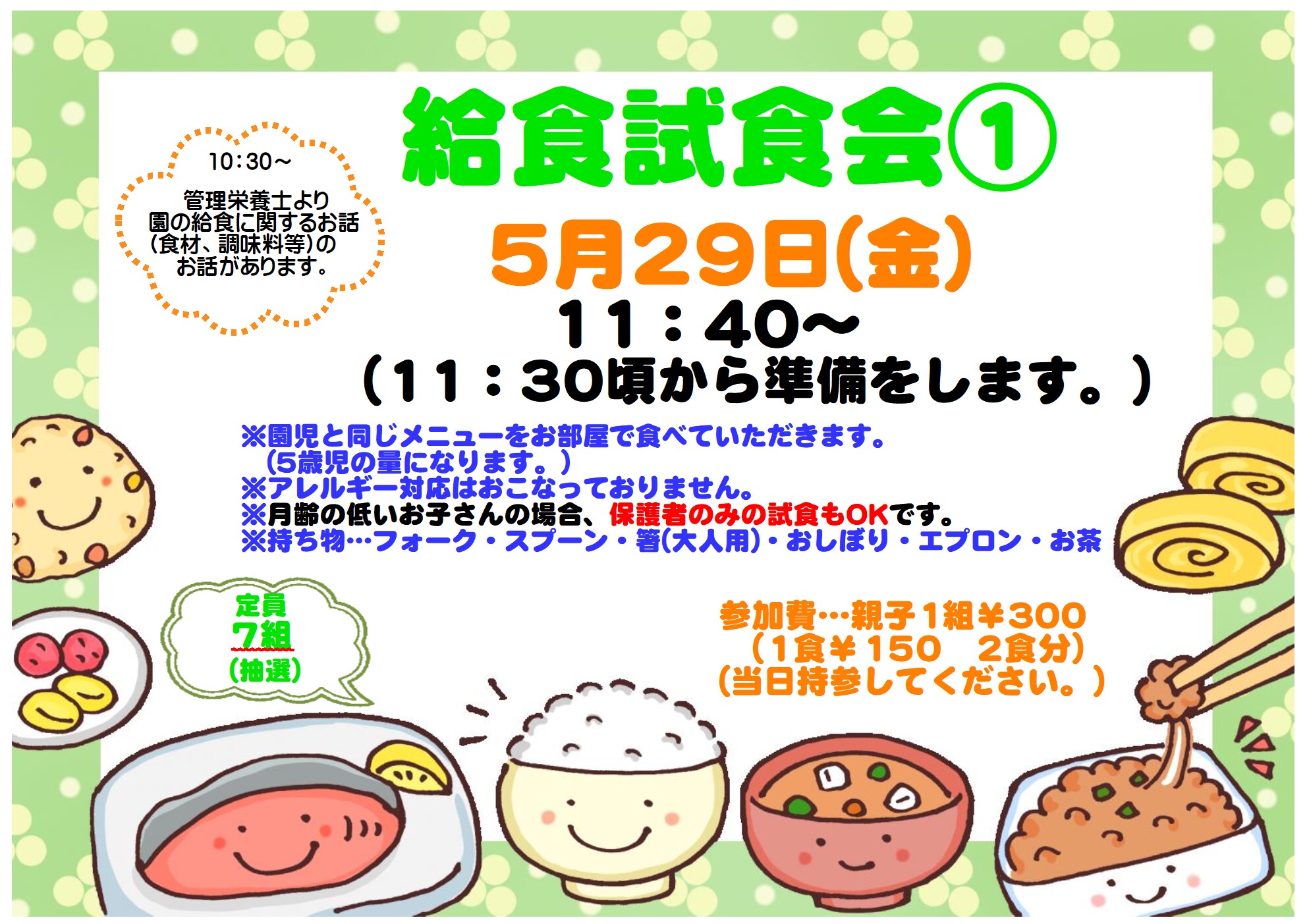 子育て支援センターどんぐり『給食試食会①』参加募集のお知らせ 2026.04.27お知らせ 参加希望の方は、【行事参加フォーム】よりお申し込みください。 お知らせ 令和8年度 4月の子ども・地域食堂 ななかま堂のお知らせ 関連記事一覧 子育て支援センターどんぐり『利用に関するお知らせ』 子育て支援センターどんぐり『こいのぼりのタペストリーを作... 11月の子ども地域食堂 ななかま堂のお知らせ 1月の子ども・地域食堂 ななかま堂のお知らせです。 8月 子ども・地域食堂 ななかま堂のお知らせ コロナ感染症の報告 子育て支援センターどんぐり『ミニチュアこいのぼりを作ろう... 子育て支援センターどんぐり『10・11・12月のおたより... 子育て支援センターどんぐり『10・11・12月のおたより...